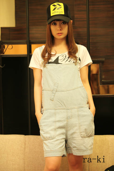 休闲款浅蓝色牛仔背带裤,真是百搭