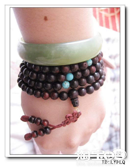 先从这串说起吧。不名贵,但很有缘份。是当初去庙里皈依的时候。师傅送的。戴了好几年了,很少离身!去年因为戴着洗澡,颜色都泛白了。这才刚刚养过来!