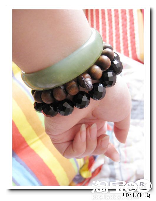 镯子从不离身,最近一直这样戴。那串佛珠BF戴着的!