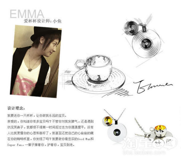 西方有句老话,咖啡杯总是成套的,也就是说,不管你们是否常常见面,彼此的钻石心都会心心相应,而且,我把杯子设计的就像一个转盘,想他的时候真的就可以转一转哦,说不定魔法就会产生了呢!