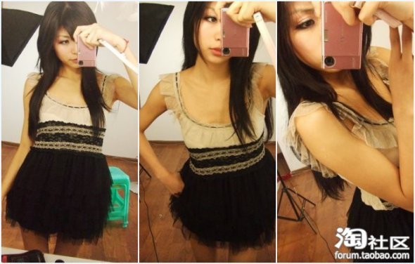 这个衣服看见网上有,人家是皮肤很白皙穿起来像果冻布丁样Q 看我呢,整个一黑皮~