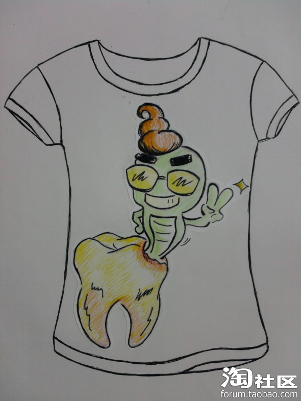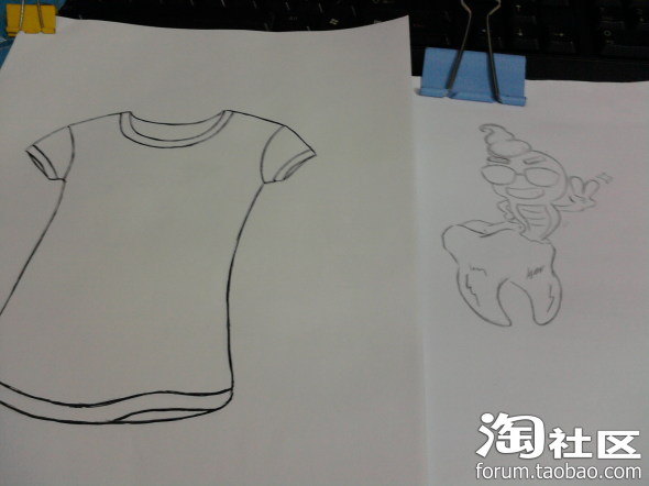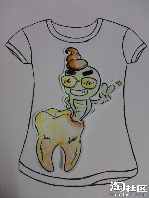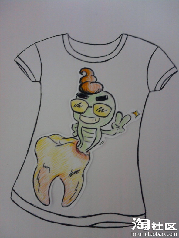 (因为之前的也是直接画在衣服上,但……画得不太尽人意,也浪费了好多的纸,于是只好先画衣服,然后把图画好了,再贴上去,我可以保证,这个真的自己画,没作弊哦!