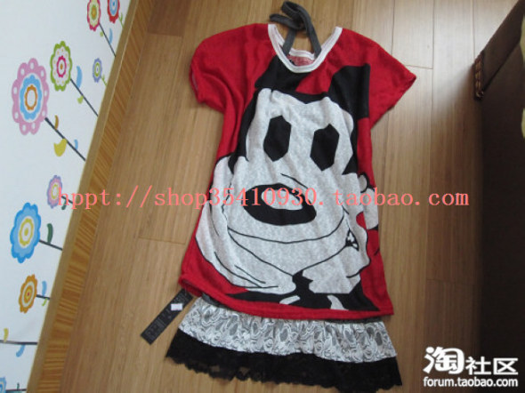 纯棉 收腰连衣裙。个高的妹妹也可以当t恤的呢。