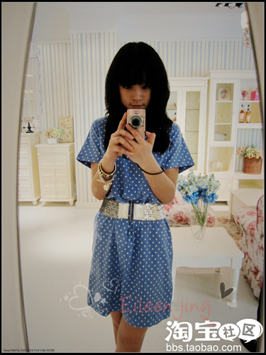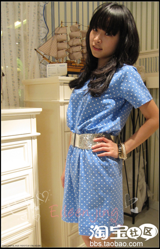 3.复古的点点&特别的蓝色+亮亮的银色腰封