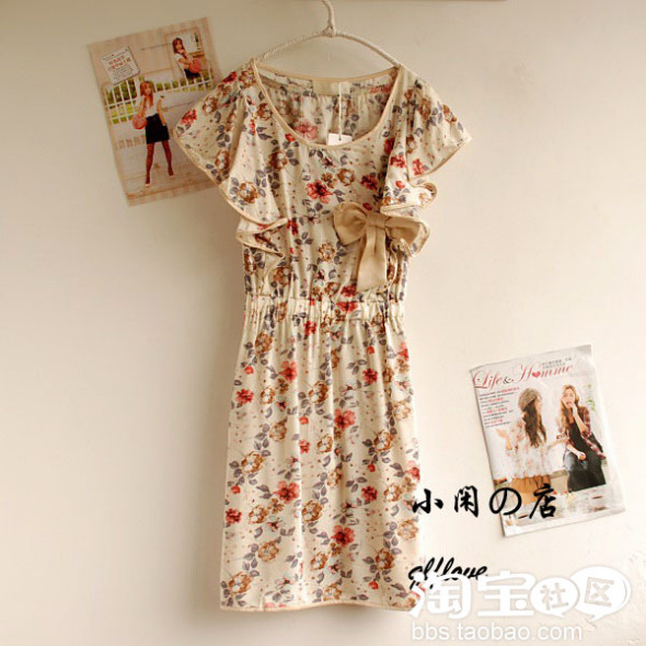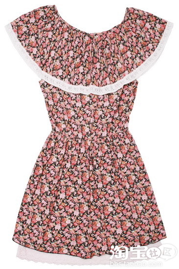复古碎花蕾丝边连衣裙原价58 2人团价50