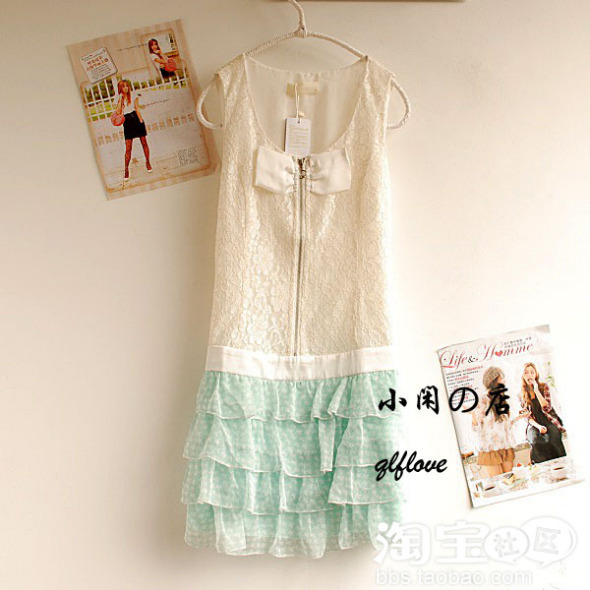 日系VIVI米娜新款 夏日经典 蕾丝雪纺 优雅吊带连衣裙 抹胸洋装