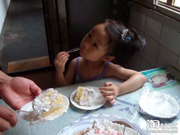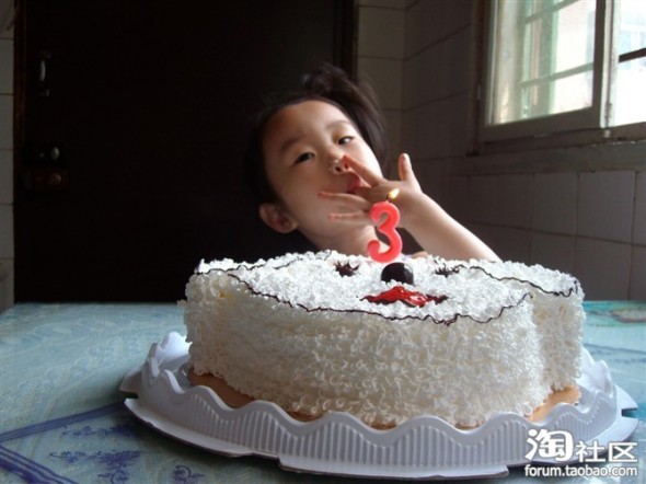 别笑我馋嘴啊!我不是想偷吃,我是在瞧瞧这蛋糕上写的啥?