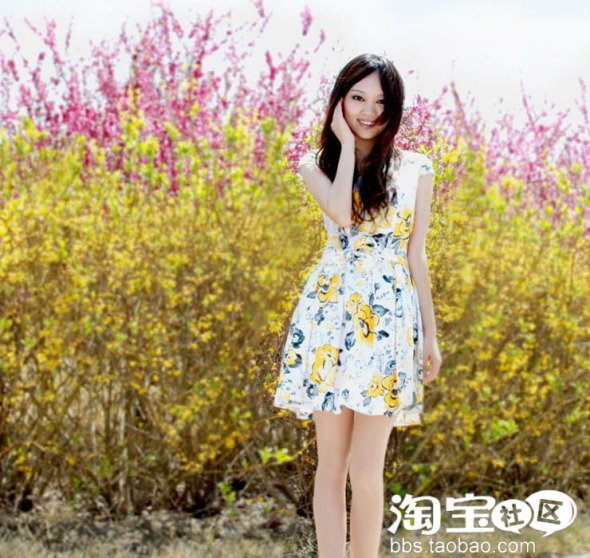 裙子的娇艳的花朵图案,让你更加妖魅。