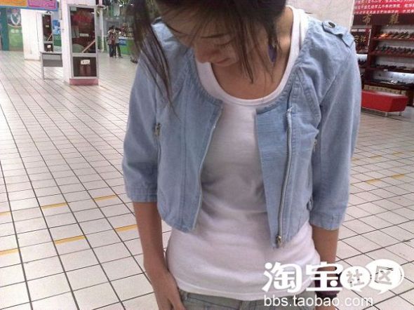 下面是配牛仔小外套 如果是娇小的MM 什么样的牛仔短外套都OK拉 如果是身高比较高的就要选择简单大方的款式啦