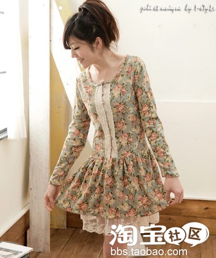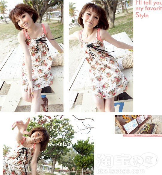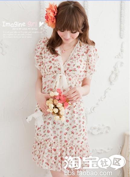 印花+蕾丝+雪纺,非常恰当的结合在一起,气质淑女的风格