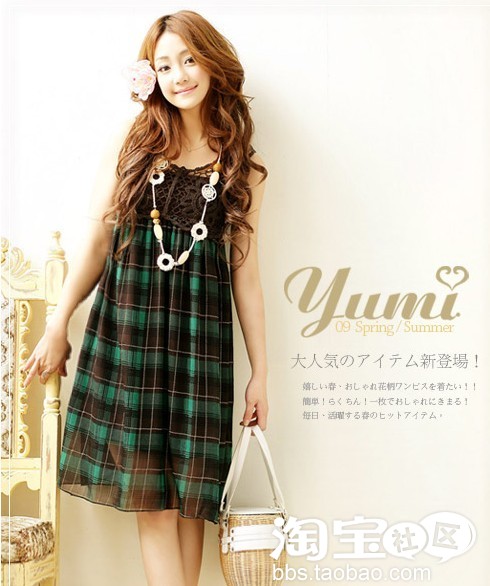 英伦格子加上同色系花网组成了另一种田园氛围。