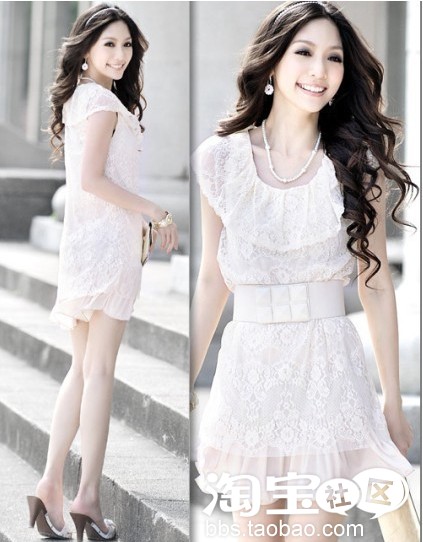 白色蕾丝加上荷叶领事街头一道靓丽的风景。