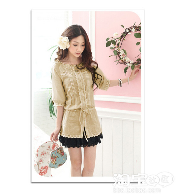 在来一款田园风的衬衫,韩版花边领中袖甜美淑女中长款衬衫,淑女不失田园风格,中袖不管保守MM还是奔放MM都可以试试的一款哟。