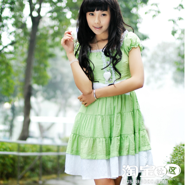 3,来件可爱风的裙裙,可爱淑女公主袖泡泡袖短袖连衣裙,此款不管熟女还是小女生,穿出来立马变可爱不少,公主袖的设计本身比较显娇小可爱,在加上蕾丝花边,下摆设计节节增加层次感,我们每个女人应该装下可爱哟,呵至少在自己老公或者男朋友面前装可爱还是应该的,可爱的女人,人人爱嘛,我们不能拥有较好的脸蛋和身材,但我们有装可爱的权力。