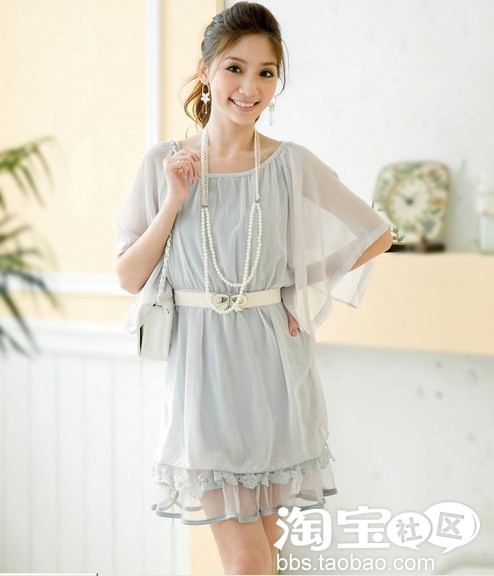 1,淑女风格的,飘逸中袖雪纺连衣裙洋装,这种款我想大多数女人们都可以接受,即淑女又带点甜美,给女人增添了不少分哟,像假小子可以试下哟,说不定让你男朋友大吃一惊,呵。。。
