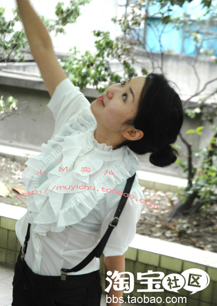 3、荷叶边衬衫+背带短裤 活泼感悠然而生