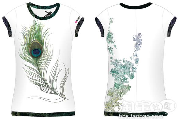 设计说明:用孔雀的羽毛和色彩,装点在T恤上,每个人都有自己的骄傲,就孔雀一样。