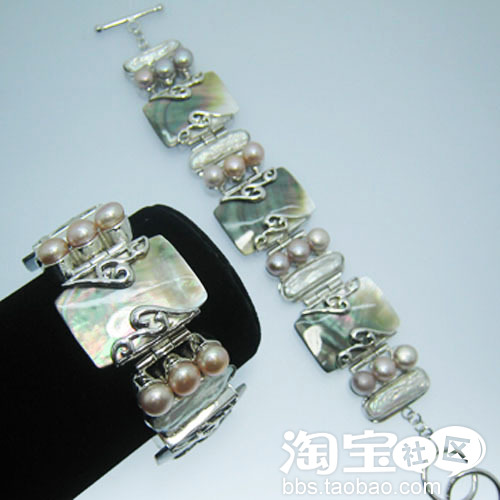 这个款式上用到两种贝壳: 白色的是白海贝,黑色的是黑蝶贝。这个款上用到的都是比较后点的料。因为您看到这些贝壳的面都是凸面的,这就要求贝壳原材料有足够的厚。。。而且它要切成这样小的形状然后拼起来。教一般的款,成本就会高很多。