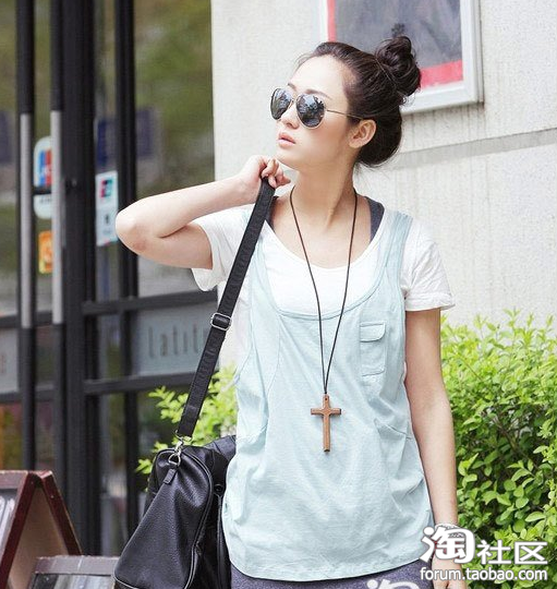 外面是是吊带衫,里面是光板T,两件是不可以分开的,呈现时尚叠穿效果。面料有弹性, 手感柔软,穿着舒适~~~