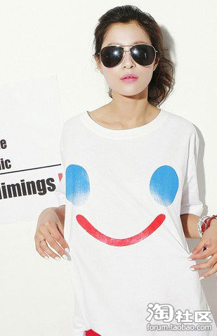 笑脸印花中袖T恤~柔软的材质,宽松简洁的款式,穿着舒适轻便~前身笑脸印花,吸引眼球~
