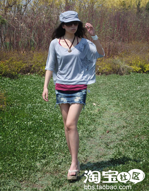 下摆是不规则设计,很有味道滴。有多种穿法哦,也可以系成小上衣来穿呢