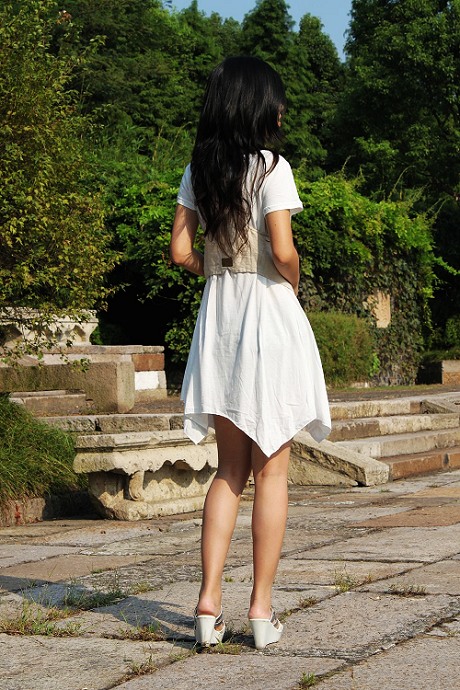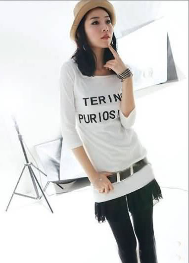 04 白色的长款T恤看起来充满了独特的清新气质,