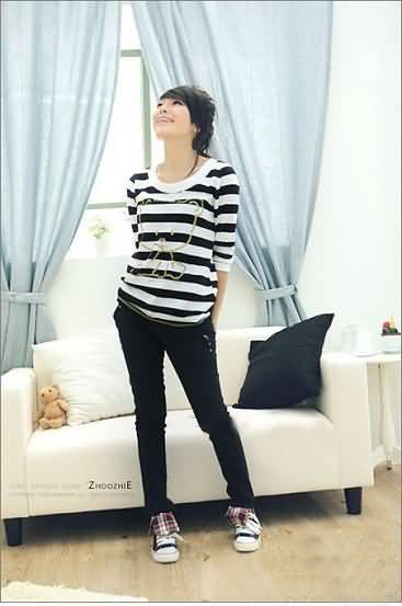 07 简单的条纹T恤看起来时尚又百搭,