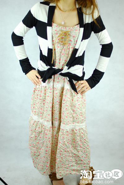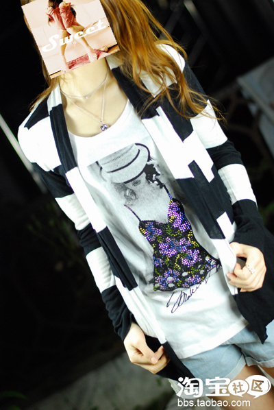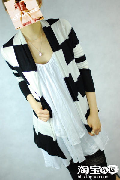 最近又添加了一件很百搭很潮人的条纹开衫~~~