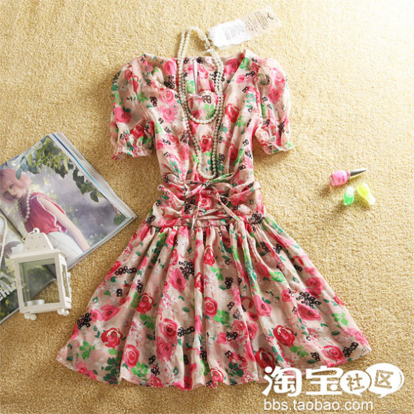 有点小夸得蕾丝印花雪纺裙子 超爱呢