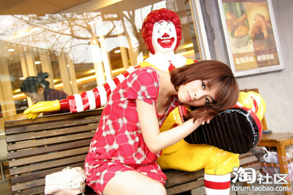 哈哈,回到麦当劳叔叔旁边,扮一回小女生呢