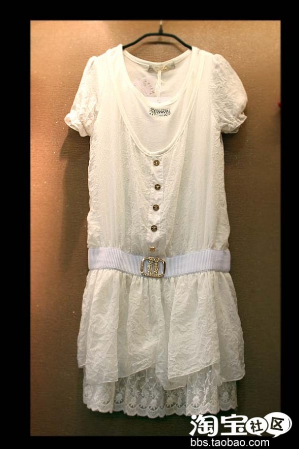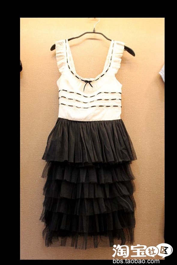 这款衣服淘网上卖的很多。我去进货的时候老板说有正仿版的。正版的是CICI牌子的。上身的米色部位是绵布的。不是蕾丝的。而且下面是五层网纱。仿的的是三层网纱的。