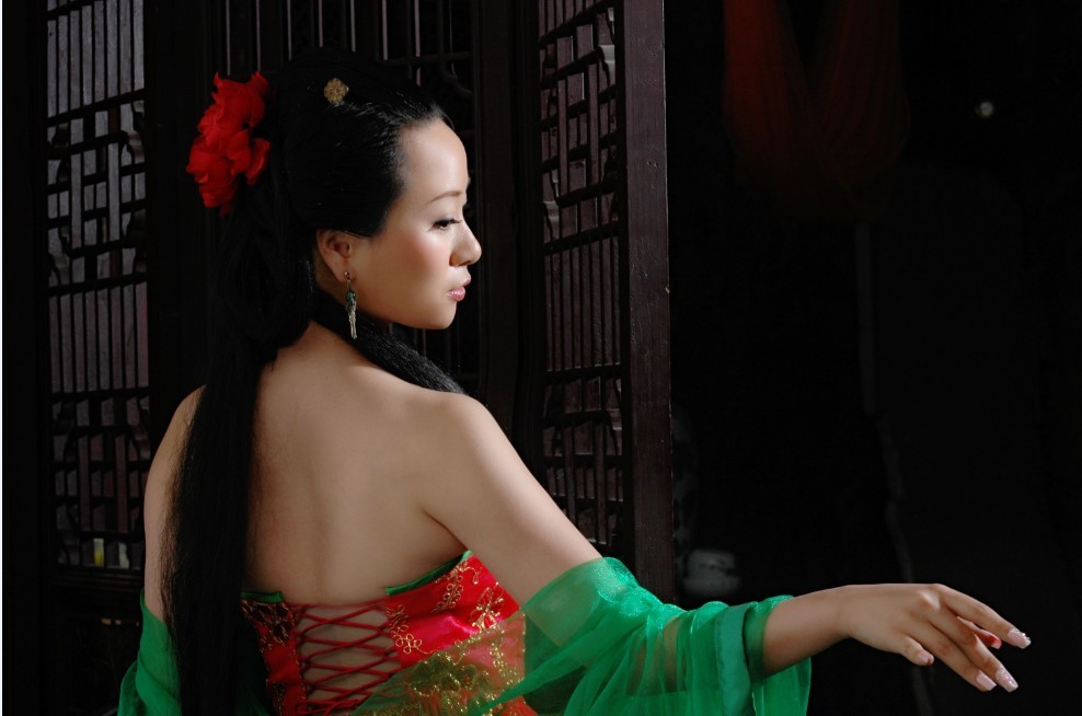 最后的是从来不曾尝试的造型,很妩媚,很妖娆。只是静夜里的一个侧影,勾勒的全是寂寞的伤感。我把这个花魁打造成别样的韵味,想来也是有故事的人儿,红绿的衣裳更是衬托了难以言喻的悲呛。纵观古今,有多少良家女子被卖入青楼,个个都是苦命的人儿,无依无靠,直到红颜老去,香消玉殒。没有人天生要做歌女,皆是有难以启齿的苦衷不可对人道,于是天天把酒欢歌麻醉自己,可惜世人皆醉我独醒,看破红尘却又不能离去。也许只是那一个承诺,一个等待,生不如死去还要苦苦坚持。不敢面对镜中的自己,只有在这无人的暗夜,轻解罗裳,洗尽铅华,叹花自飘零水自流,愿为君化作昙花一朵,暗夜里为你独放,即便是瞬息,也是此生无憾。秦淮河流了多少年,始终是没有洗净哀伤的美人泪。我始终在演绎每一套衣服的时候都给与它一个故事,让它变的有生命,有灵气。我的仙女不高高在上,我的妖精妖媚而不庸俗,我就是那亦仙亦妖的平凡女子,纵然时光穿梭造型百变,不变的是韵味千般和风情万种,我可以甘于平淡,平静,乃至平凡,但始终不愿平庸。