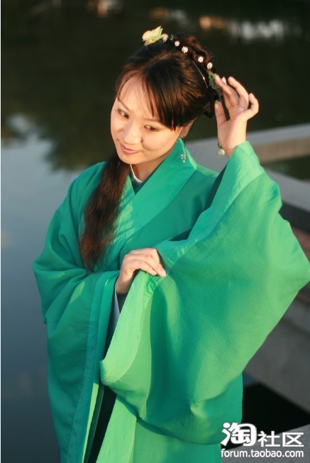 也许是我比较适合古装,气质比较独特,找代言日系韩系的模特比找古装容易,一直没合适人选也就接连帮她做了几期下来,其实就是一个汉服,也可以有很多的风格,纯洁可以如九天仙女跌落凡尘,妩媚可以似为情放弃修行的妖精,可爱可以是凡间普通的采桑女子的娇俏可人。我一直觉得好模特是不用挑衣服的,什么衣服上了身都一样可以演绎别样风情。这一件粗布翠衫就是这样,大家挑剩了的,我一贯不喜欢和人争,简单的一样去展现它的美。简洁的小丫鬟头,一个插发簪的低眉浅笑,古意悠悠的小家碧玉如水的娇羞尽收眼底~