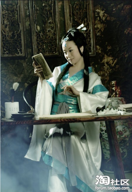 汉朝大家闺秀的装束,举手投足全是端庄气质。这样的女子应该是琴棋书画无所不能的吧,蕙质兰心的可人儿一个,冰肌如雪纤手香凝~