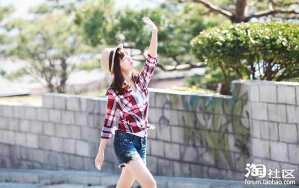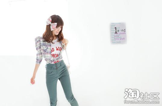 很清新的格纹,肩部有特别的泡泡袖设计哦!