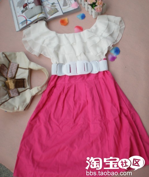 腰部有收腰的设计哦。。很显腰身呢。。还有一朵蝴蝶结点缀着。。无敌可爱甜美呀。。