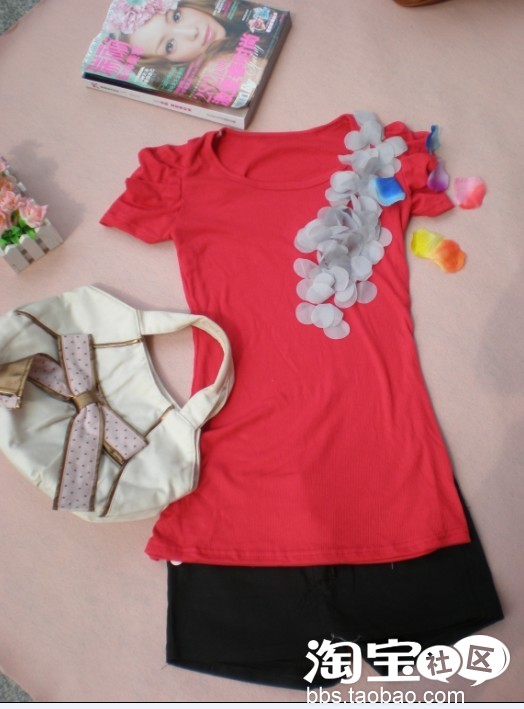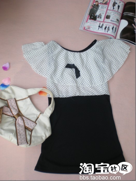 简单的白T恤。。但是在肩部加了编织感的黑色就不一样勒。。