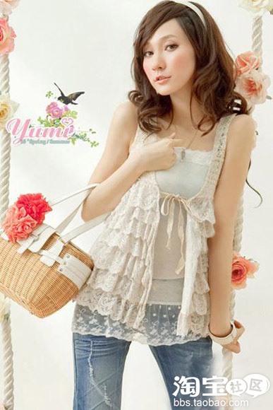 层层叠叠的蕾丝花边马甲,内搭简单白色小背心,彰显迷人气质!