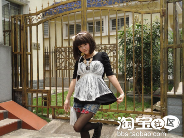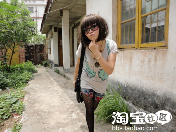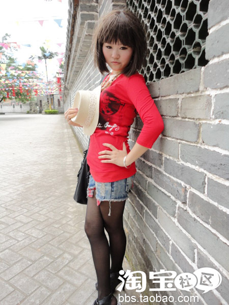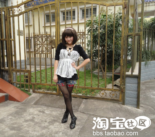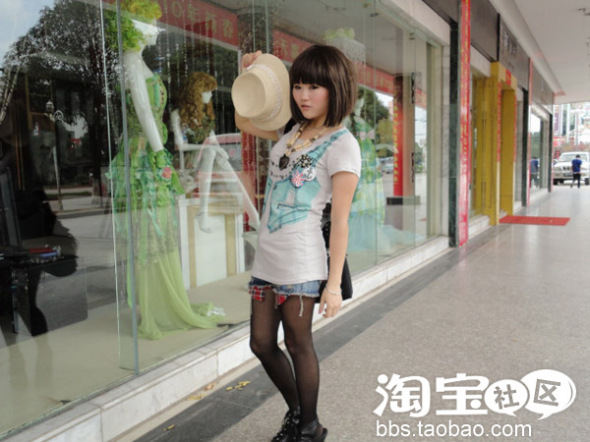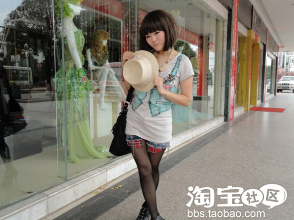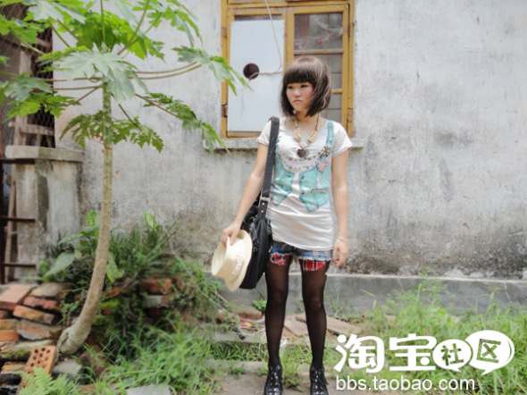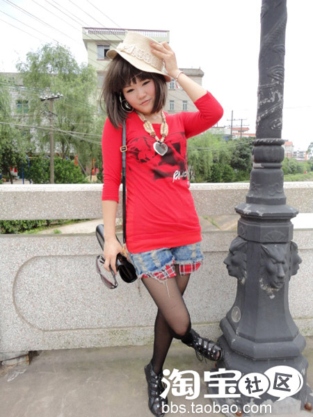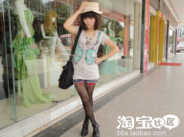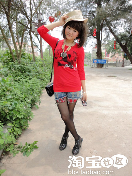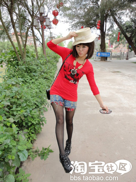 搭配当今最流行的破洞短裤.是不是很漂亮呢?