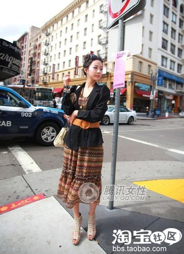 有异域风情的雪纺长裙也能被改装。加上一件小外套。配上OL派头的腰带,能带出浓浓的上班女郎气息。