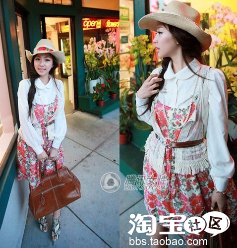 混搭是各种搭配高手尝试的风格,碎花又是春夏交接的大热元素,与白衬衫和马甲层层搭配。一条腰带解决了层次过多的繁乱,还能简洁上身的搭配效果。