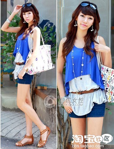 娇小MM也可尝试中长款两件套,混搭一条细腰带,再搭配与腰带同色系的铆钉凉鞋,视觉拉长身高5cm以上,精致珠片项链更有明星范。