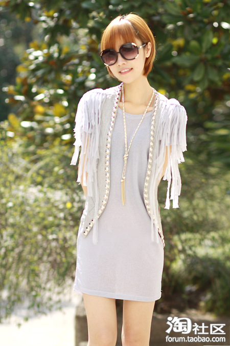 (流苏连身裙)性感与气质融合的一款,肩膀处美美的流苏,流苏代表了时尚和不经意。穿上它,就犹如好莱乌女星不经意却优雅的出门喝个咖啡或者是买个花,春天了,穿上他就出门约会。。。