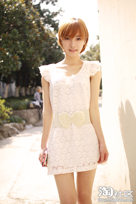 (韩·蕾丝公主洋装 超仙)一穿上它你就是仙女,蕾丝控,公主情节,都适合你,全蕾丝的设计,喜欢它的纯白,让人感觉非常的春天气息,阳光下,原来是白色最美丽的,美丽的没有一丝做作,非常的无瑕。