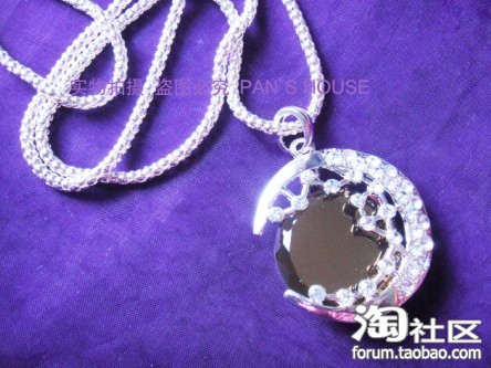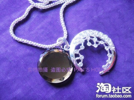 这款项链很特别,据说它有一个很古老的传说,具体是啥我貌似记不清了,好像是女神和一棵树的故事。。。这个月亮和下面的水晶是可以分开的。。。下面接着就是喽~~