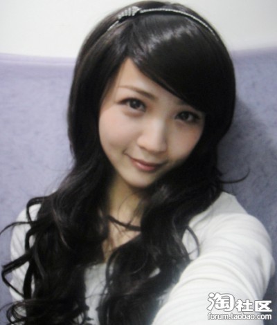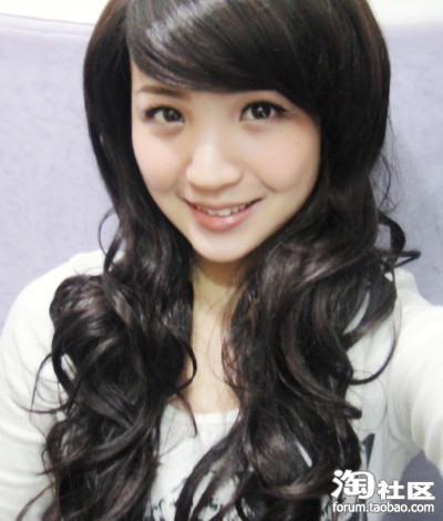 言归正传,这款长卷发我一直都很喜欢,很适合甜美的女孩子。虽然我长得不够甜美,但也可以这样打扮的撒~~哈哈~勒~这样不甜美的话?(*^__^*) 嘻嘻……