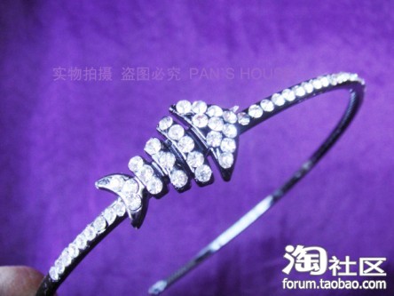 这个鱼骨头发卡本来是姐妹淘要我帮她带回来的,结果被我自己霸占啦~~单排满钻的,很亮的说~^_^