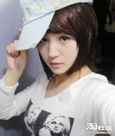 哟~发型有点乱。。嘿嘿。。。这个蓝色的帽帽是我拿饰品的时候带回来的,帽型很好,可惜这几天天气都不好,下雨ing。。。