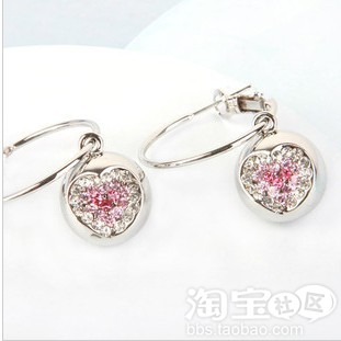 这款 心形满钻耳环,中间的粉色很好看呢很喜欢这款呢!形状很好看