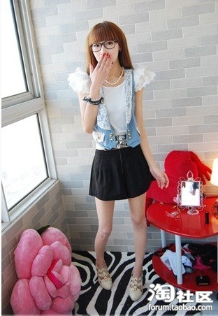 又学到了 ~!身材好好哦~~我也有牛仔衣呢,黑黑